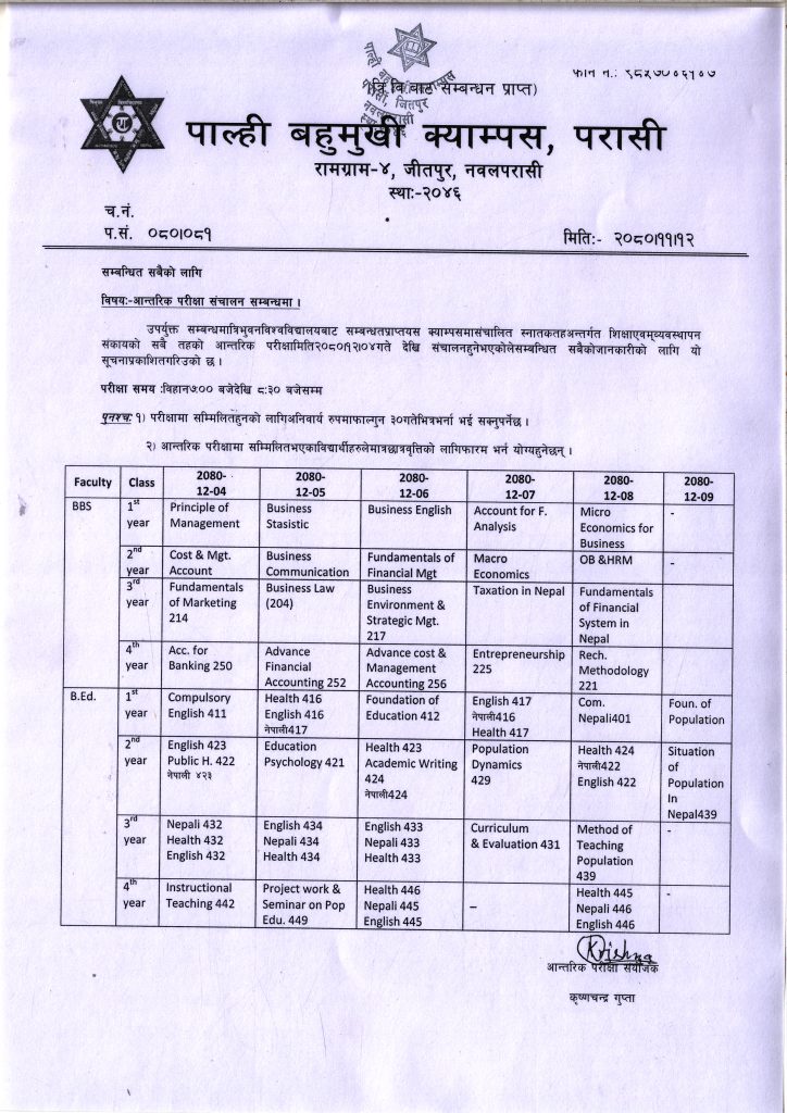 आन्तरिक परीक्षा सम्बन्धि सूचना ।