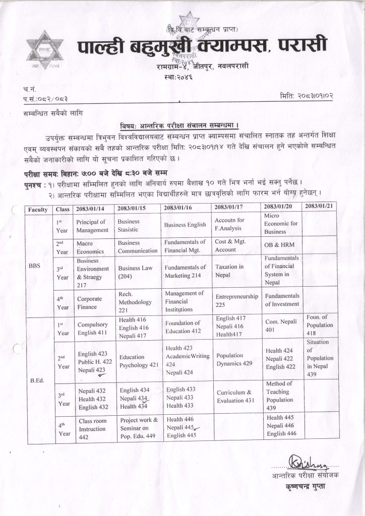 आन्तरिक परीक्षा सम्बन्धी सूचना