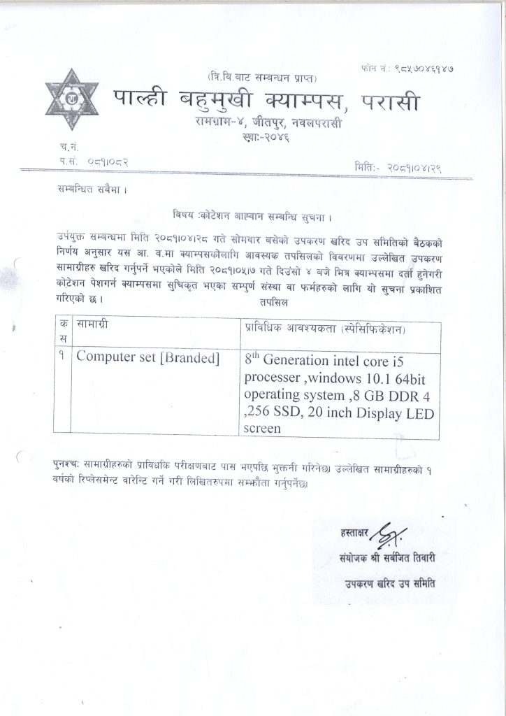 कोटेसन सम्बधि सूचना ।