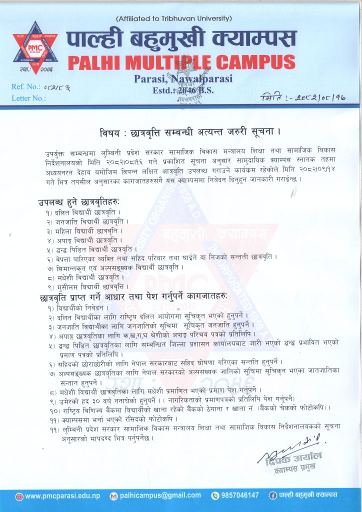 छात्रवृत्ति सम्बन्धि सुचना